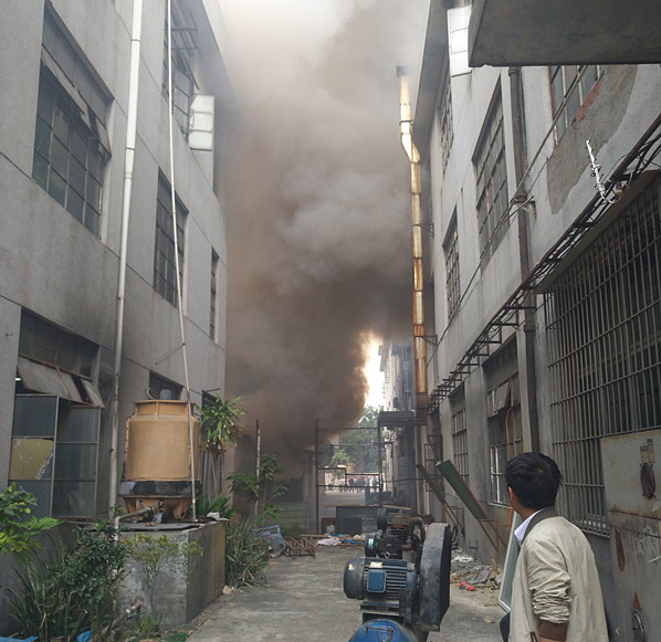 別小瞧現(xiàn)在是冬天的季節(jié)而不重視消防安全意識(shí),出現(xiàn)火災(zāi)不會(huì)因?yàn)樘鞖夂蜌夂蚨雎?,今天下午三點(diǎn)半左右辦公室電腦突然斷電,正在納悶兒的我還不知道什么情況,突然被同事叫出去“快點(diǎn)出來(lái),旁邊著火了”我在意識(shí)過來(lái)。就在今天2017年1月17號(hào)在東莞市大朗鎮(zhèn)高英村高英工業(yè)區(qū)一家硅膠制品廠房燃燒起火,而正是我們公司的旁邊的一家同行,經(jīng)過了解堆放硅膠廢料和白電油的地方放置在一起導(dǎo)致出現(xiàn)火災(zāi),現(xiàn)場(chǎng)濃煙滾滾,一間單獨(dú)的房子被大火洶洶包圍,而這時(shí)我司領(lǐng)導(dǎo)冷靜的思考了以后決定帶領(lǐng)我司員工前去幫忙滅火,將火勢(shì)逐漸撲滅。